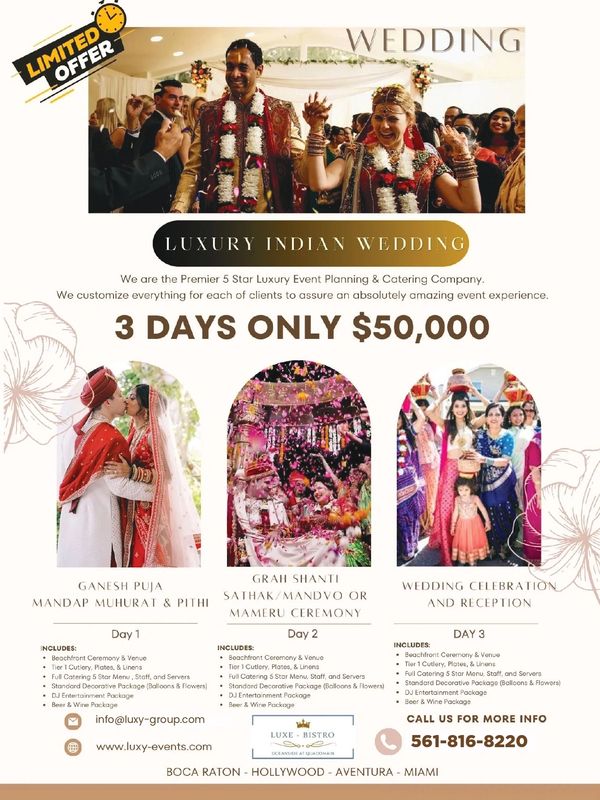 We offer just the Catering Portion for any type of Event, we offer all types of food from any Culture.