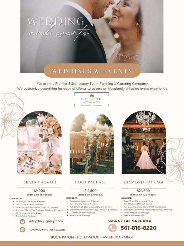We offer a luxurious custom program for any event you may wish to cater for and we will elevate it to meet each and every need you have!